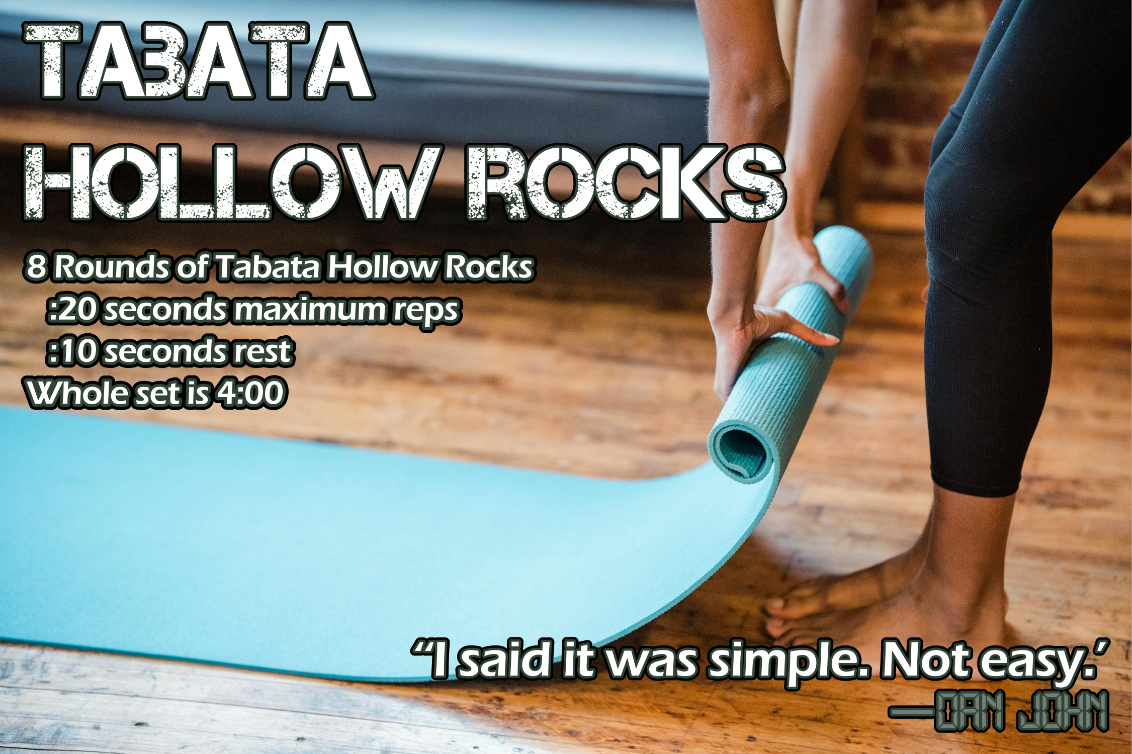 The first round probably won’t be too bad. But wow do hollow rocks sneak up on you. Soon you’ll feel like there’s a taught cord running down your stomach that’s threatening to snap. Get what you can, and if necessary, drop for two breaths before getting back at it for the time left in each :20 second round. Focus on the control over the reps and you’ll be surprised how quickly you’re doing all eight rounds without a breather.